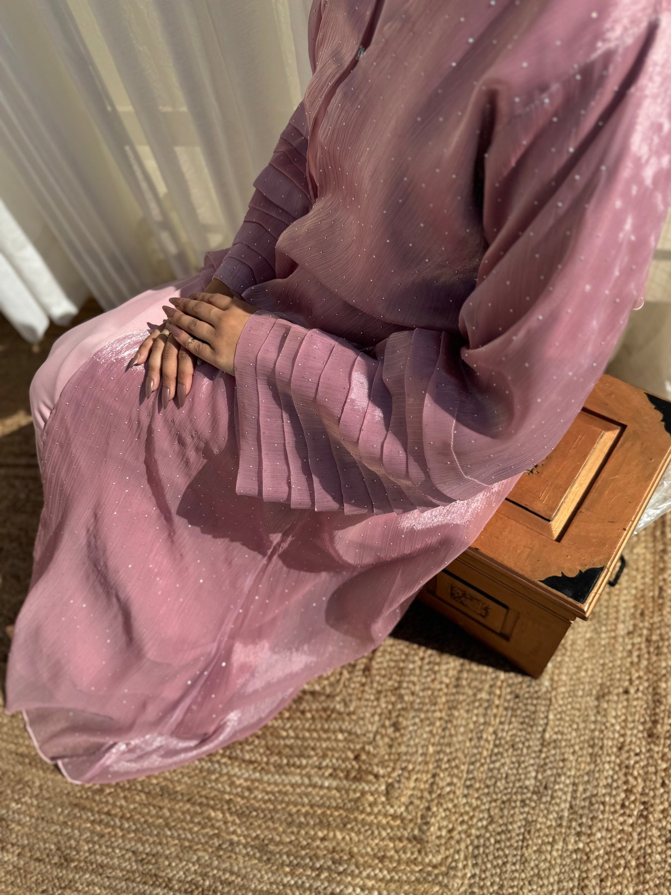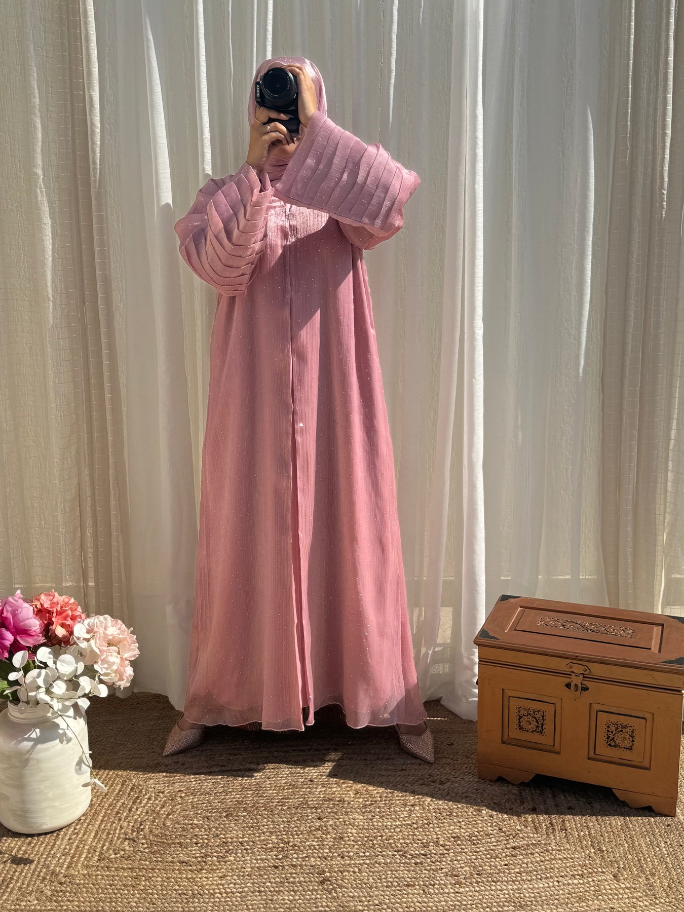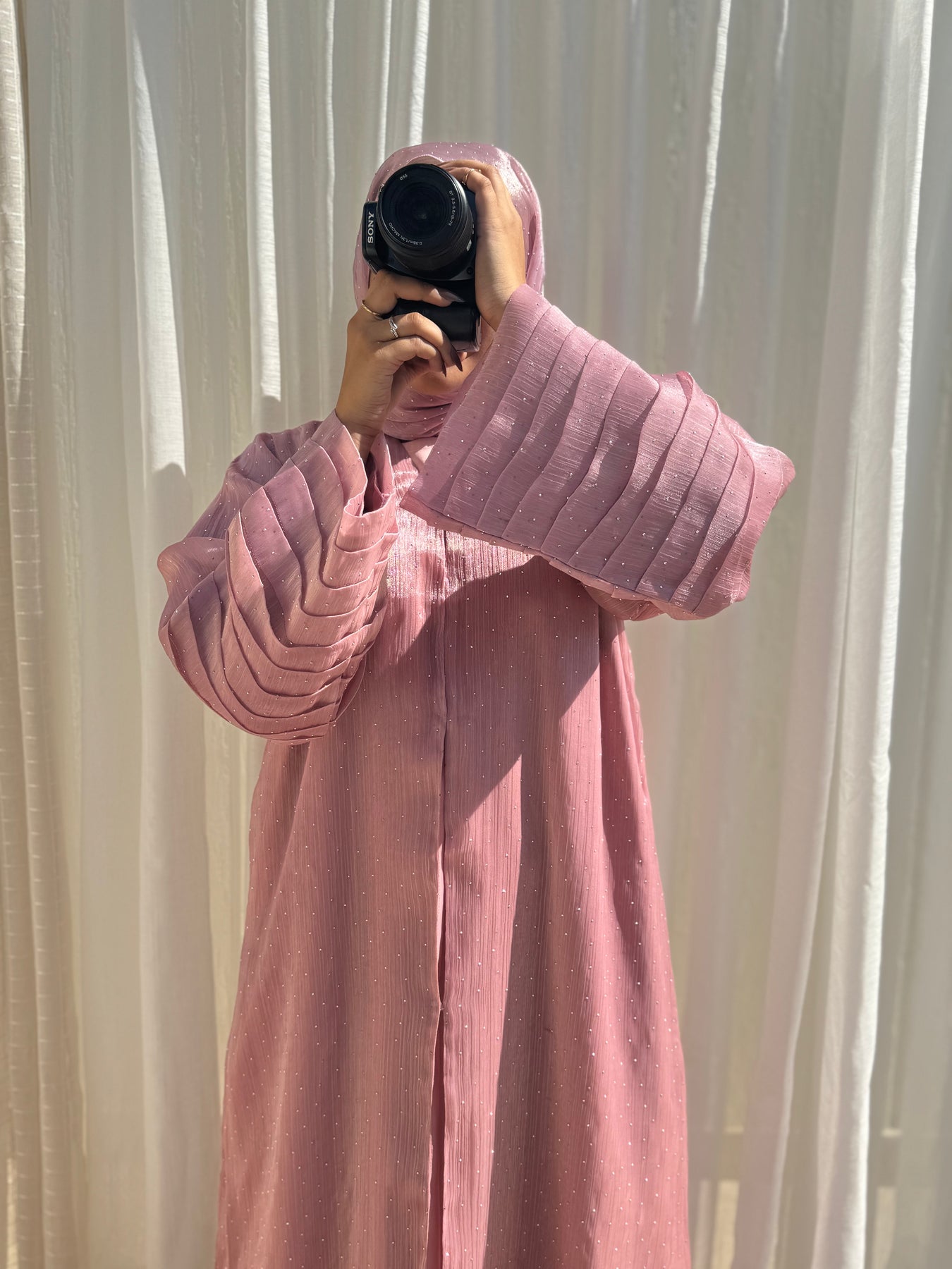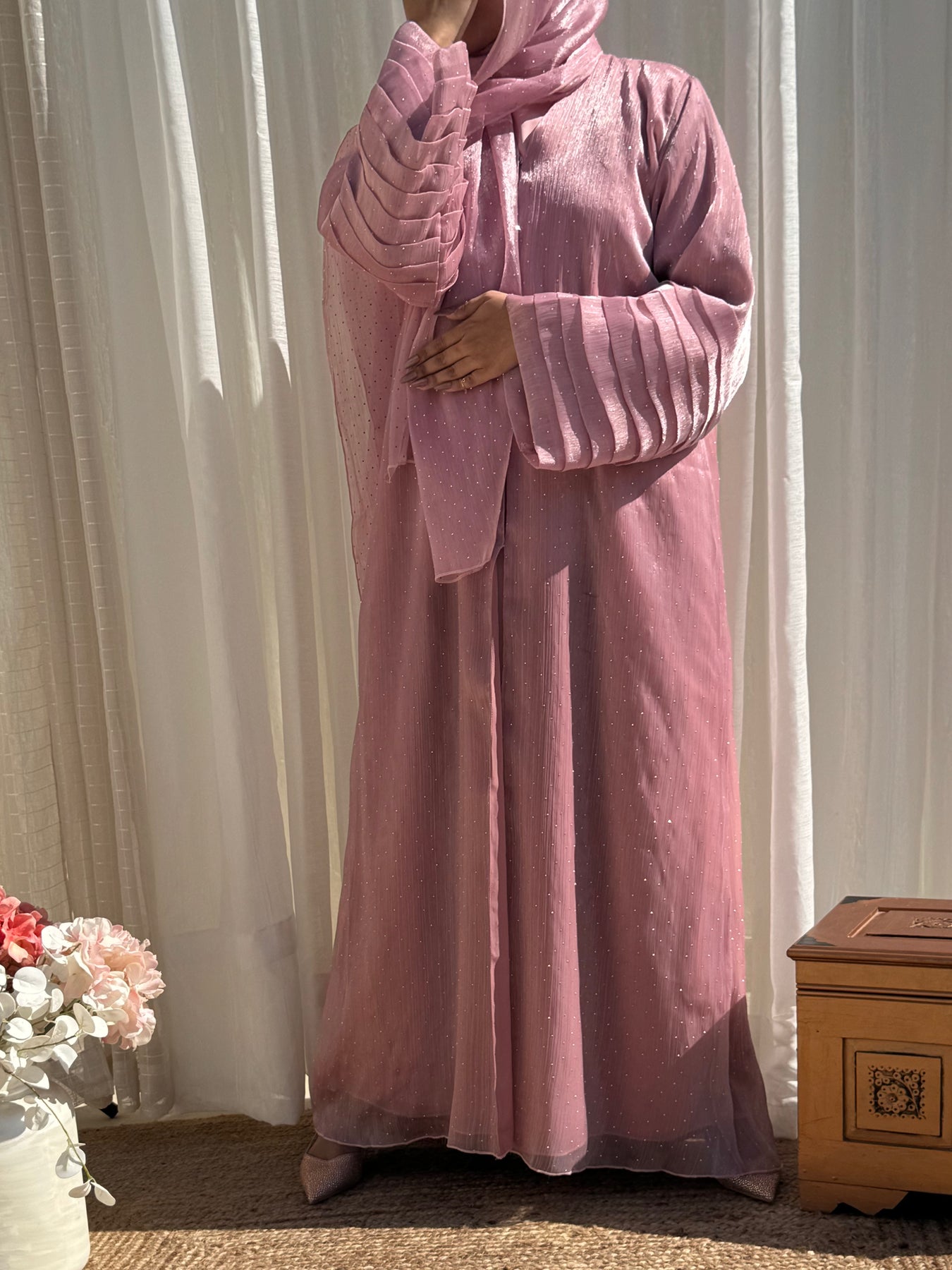Celestial Empress Fancy Layered Dubai Style Open Abaya (Pink)