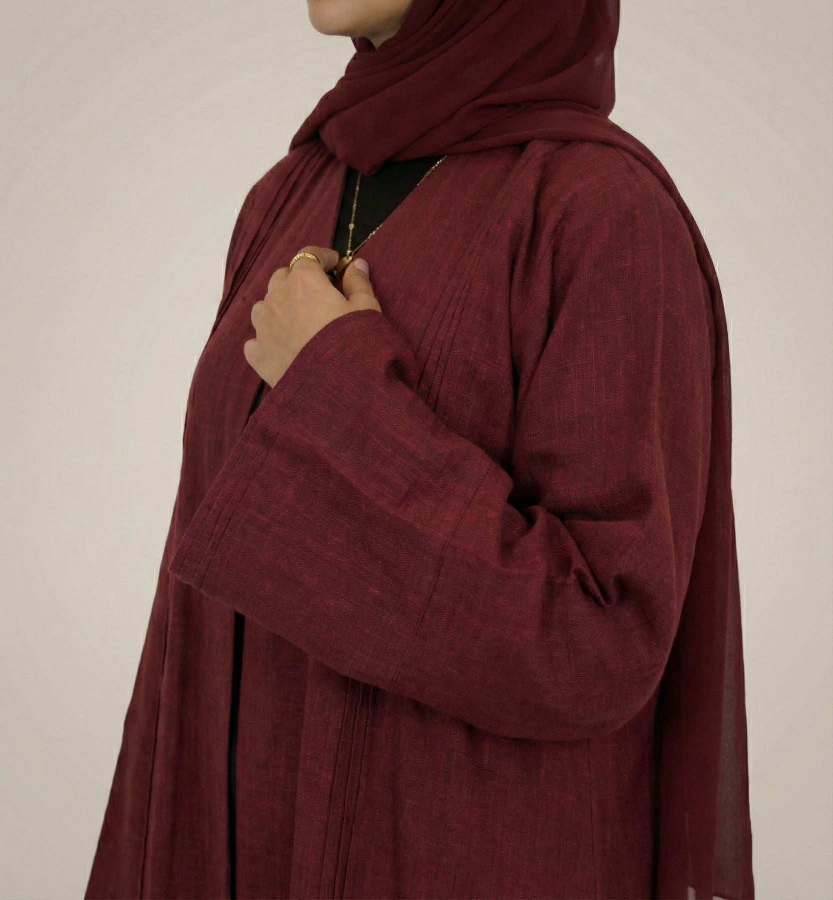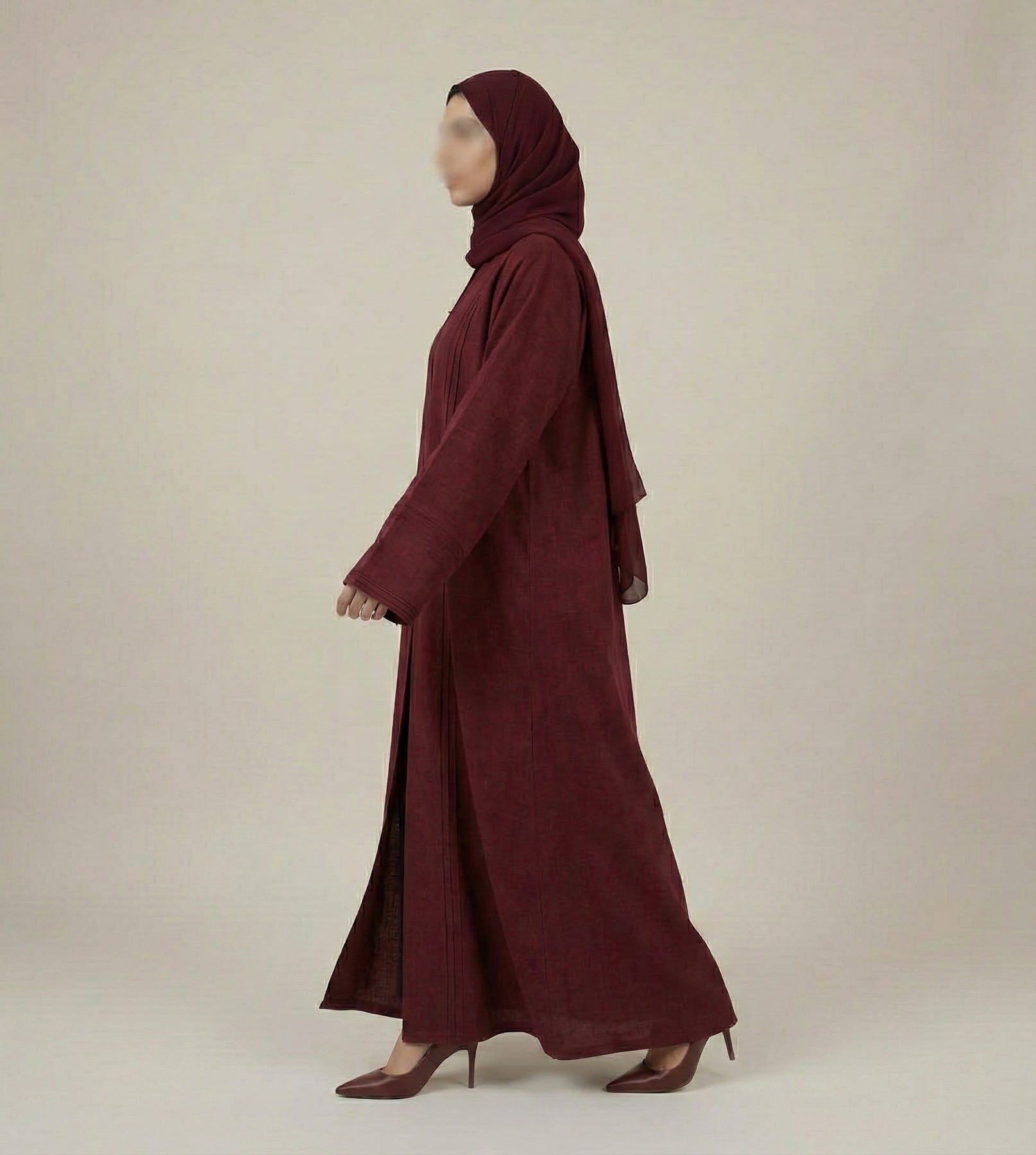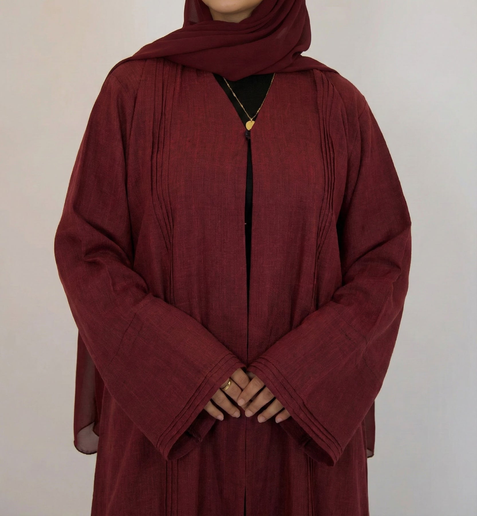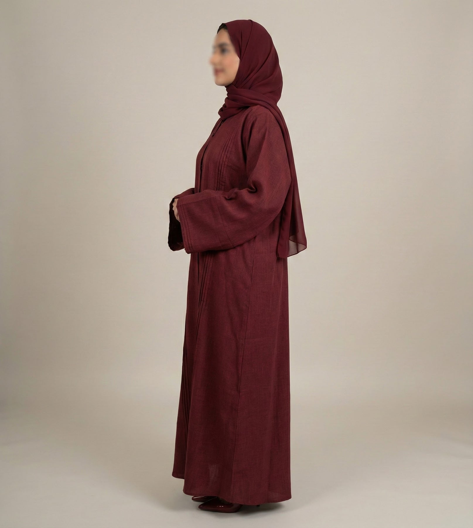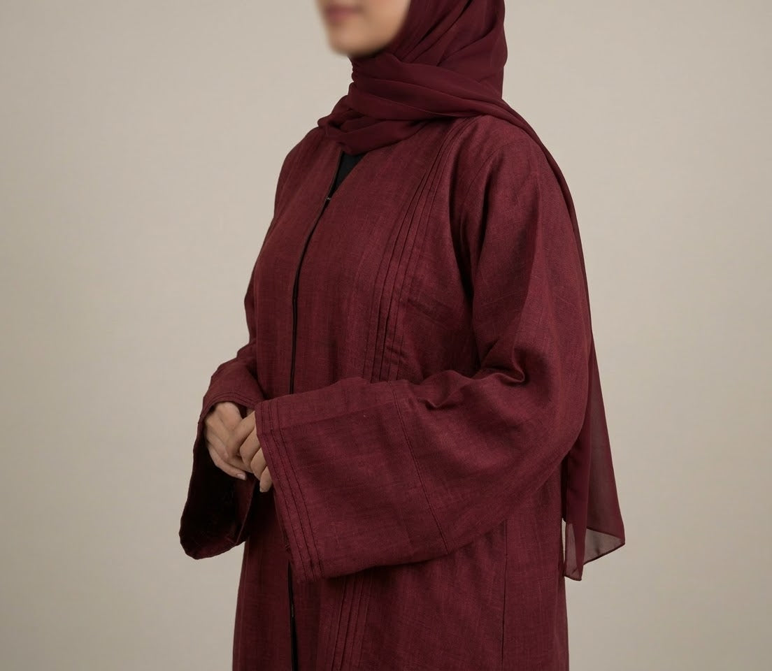 🎁 Set Includes: A beautiful Wine Red Abaya + matching Chiffon Hijab.